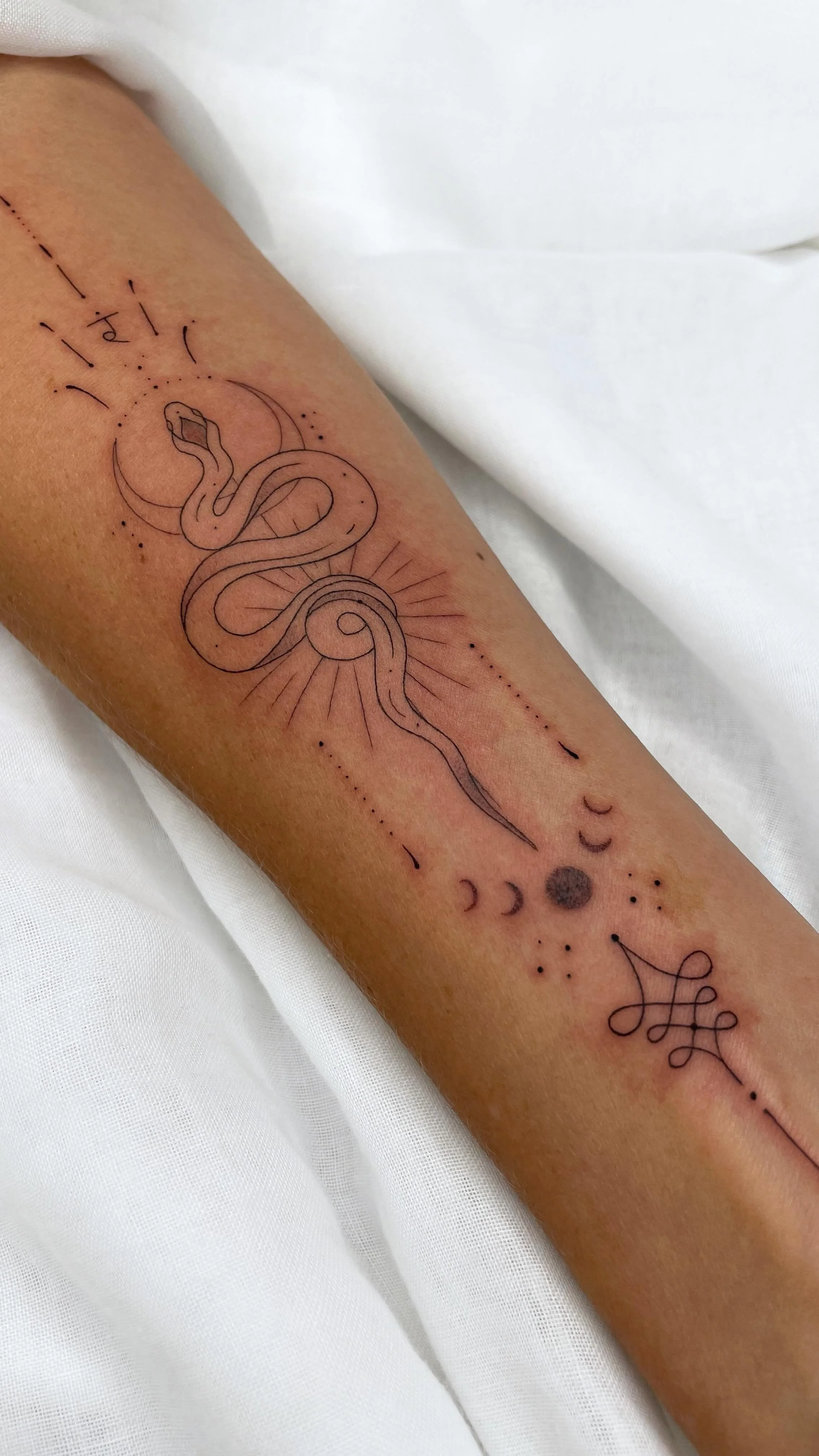 this powerful keynote merges caroline's signature process of spiritual tattooing with astrology, numerology, and ancestral symbolism. she shows how tattoos can become intentional rituals of healing, reclamation, and energetic activation. through visual storytelling and real-life transformations, caroline guides audiences to see ink as embodiment — and the body as a sacred canvas. through her signature process, each design is a visual embodiment of soul purpose and spiritual alignment. audiences will walk away with a new understanding of tattoos as modern-day ritual—activating and healing.