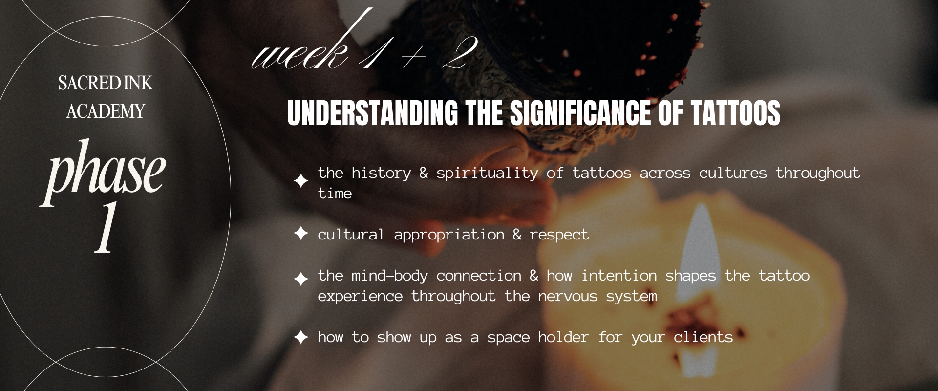 We’re so happy you’re here.this is more than just a tattoo course — it’s a new era. a space where conscious tattoo artists gather to create, to heal, to rise together and remember the lineage of tattoo artists that we come from.here, we merge tattooing with personal development, energetic awareness, and intentional business practices. you’ll learn how to craft tattoos rooted in astrology, numerology, and soul-level storytelling — while building a practice that’s sustainable, sacred, and aligned.this is for the artists who know they were born to do this differently.